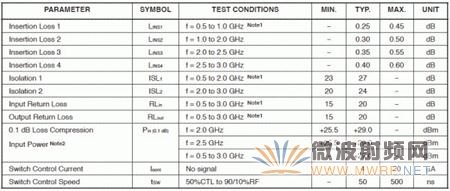 有一個(gè)比較奇怪的現(xiàn)象時(shí)我們很少看到在Datasheet中提到切換速度這樣的參數(shù)。在絕大多數(shù)設(shè)計(jì)中,幾乎無一例外的使用了NEC公司的uPG2179作為切換芯片(Switch),其典型參數(shù)如圖5-2 所示。