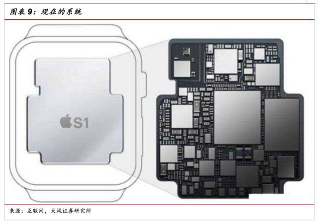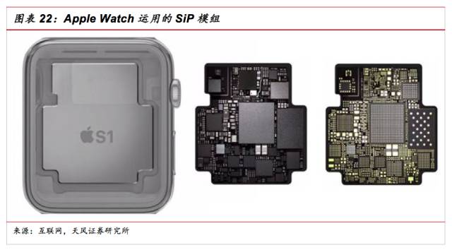 從蘋果產(chǎn)品看SiP應(yīng)用。蘋果是堅定看好SiP應(yīng)用的公司,蘋果在之前Apple Watch上就已經(jīng)使用了SiP封裝。