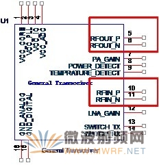圖2-2 收發(fā)器的射頻輸入與輸出管腳